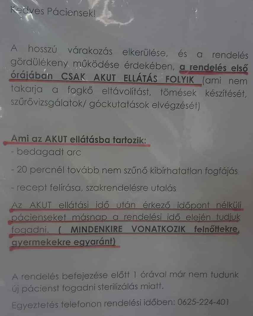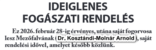 2024. Dr. Jenei András ügyvezető igazgató arról értesítette Önkormányzatunkat, hogy dr. Molnár Barna 2024. május 1. hatállyal lemondott és átruházta a praxisjogát dr. Fejer Krisztián Miklós fogorvos részére. 2024. április 1-től dr. Fejer Krisztián Miklós látja el a praxist tartós helyettesítéssel mindaddig, amíg a praxisjog nem kerül át a nevére, majd azt követően előreláthatólag 2024. május 1-től, mint a praxis tulajdonosa fogja végezni a fogorvosi feladatot. Akadályoztatás esetén helyettesítő fogorvosokként dr. Molnár Barnát és dr. Jenei Andrást jelölték meg. Minden egyéb körülmény, így a rendelési idő és az asszisztens személye változatlan marad.
