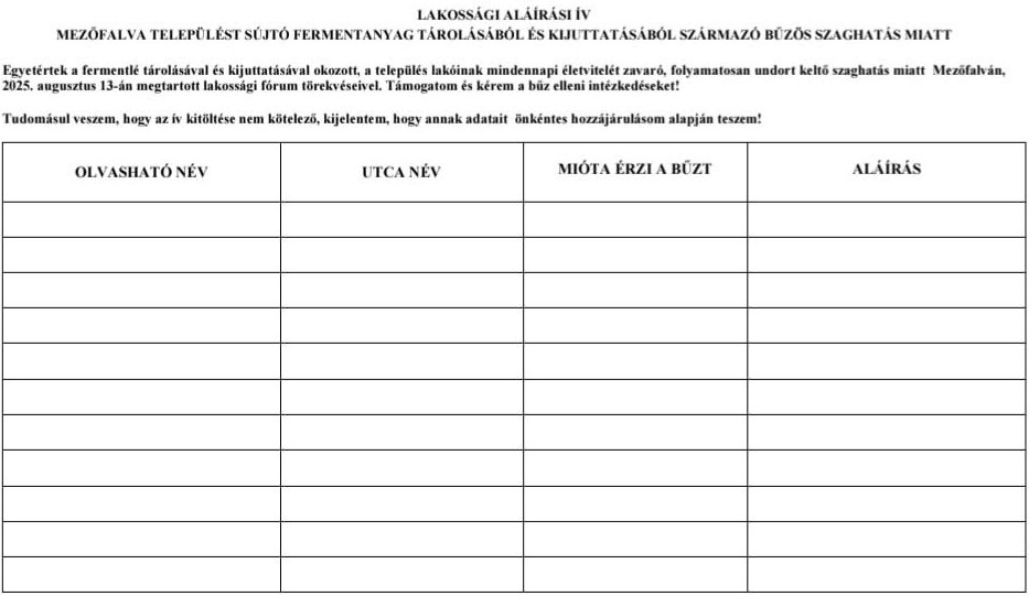 Elindult községünkben a szaghatással kapcsolatos aláírásgyűjtés - augusztusban!