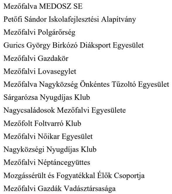 "Tisztelt Mezőfalviak! Tájékoztatom a lakosságot, hogy a Szolgáltató a zöldhulladék zsákokat 2025. 11. hó 13-án fogja hozzánk kiszállítani. A zsákok átvételére a Kiss Kálmán Művelődési Házban lesz lehetőség 2025. 11. hó 14-től az eddigi eljárásrendnek megfelelően. Márok Csaba, polgármester"